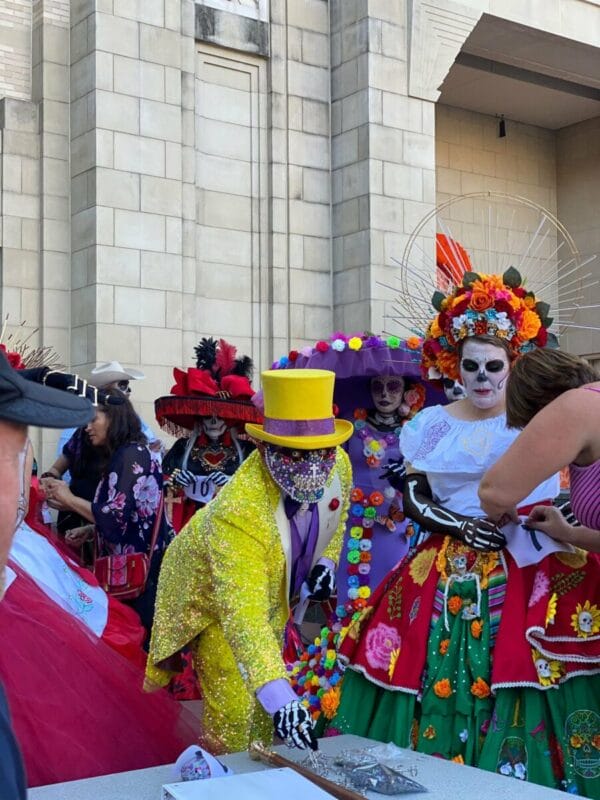 Mexicanos se reunieron en el Sundance Square de Fort Worth en Dallas, Texas se reunieron vestidos de catrinas para preservar sus tradiciones aún fuera de México.