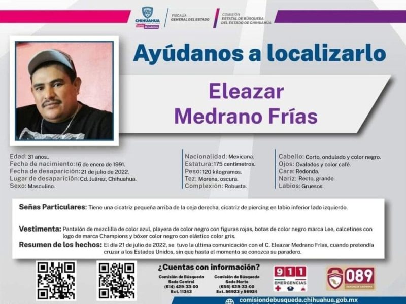 Como señas particulares, Eleazar mide 1.75 metros, es de complexión robusta y de piel morena.