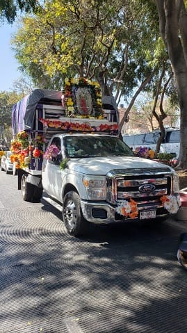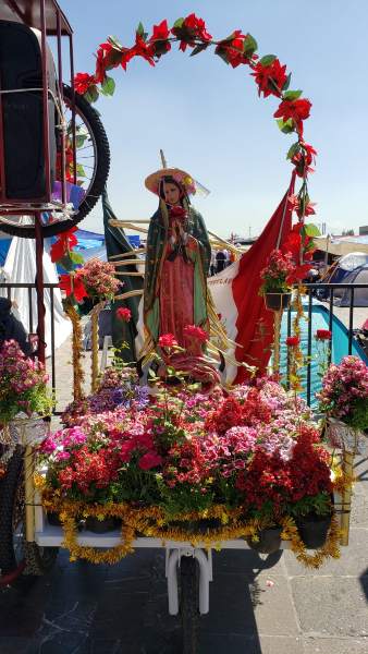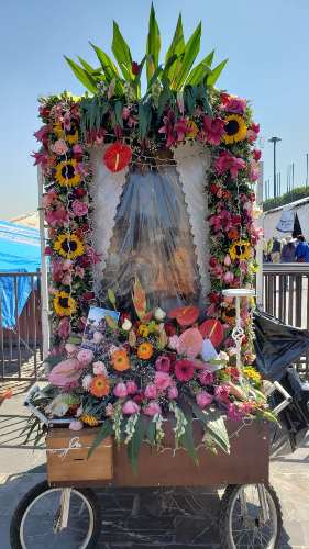 Muchos ciclistas acuden con hermosos y grandes altares rodeados de flores para la Virgen de Guadalupe.
