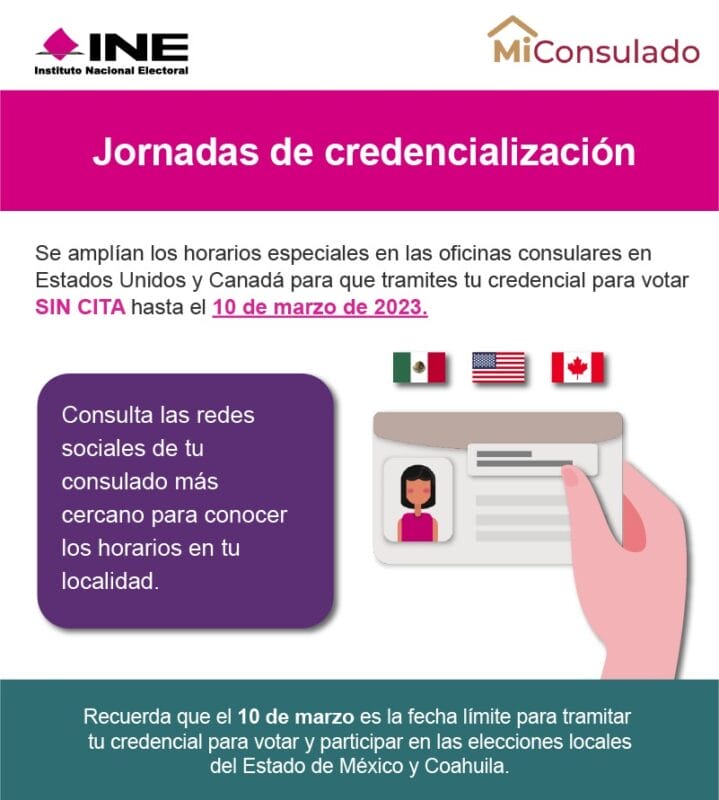 Finalmente, te recomendamos estar al pendiente de las redes sociales de tu consulado, pues tendrán jornadas especiales de credencialización, a las cuales podrás acudir sin cita.