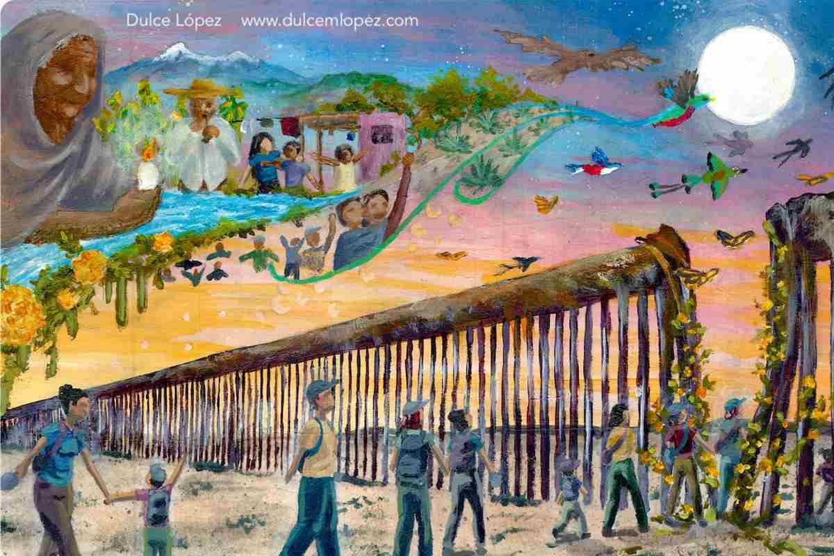 Hizo comunidad con ellos y a través del arte comunica sus pensamientos hacia ciertas situaciones que viven los migrantes. Dulce ha tenido la oportunidad de hablar con muchos migrantes y ha pintado sobre esto.