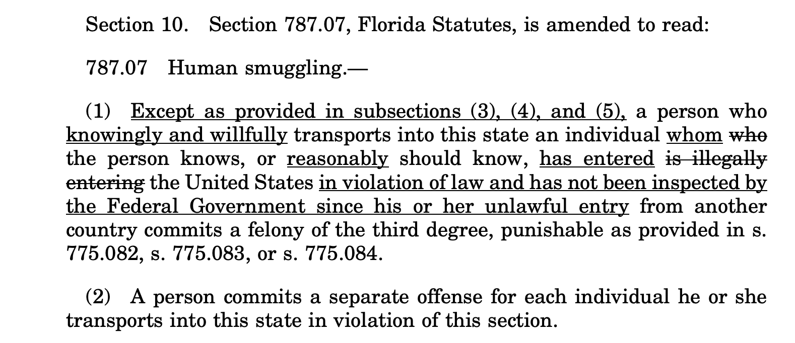 2- Se considerará un delito grave atravesar la frontera estatal de Florida transportando personas indocumentadas