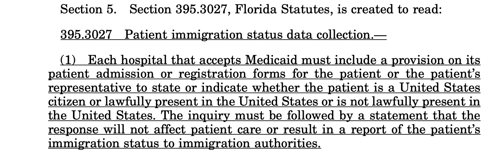 En otras palabras, según la ley, requieren esos datos para determinar cuánto dinero público se está invirtiendo en tratamientos a pacientes indocumentados en Florida.