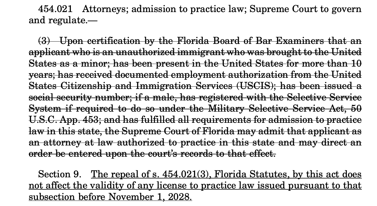 La nueva ley de inmigración de Florida ya no permitirá que beneficiarios de DACA graduados de Derecho pudiesen ejercer como abogados en el estado.