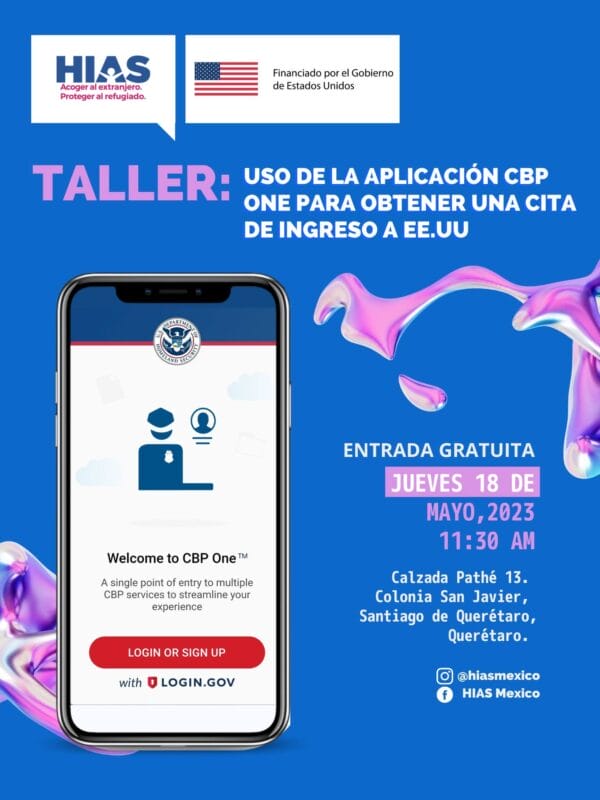 La Organización no Gubernamental HIAS México anunció a través de redes sociales un taller gratuito sobre la aplicación de CBP One.