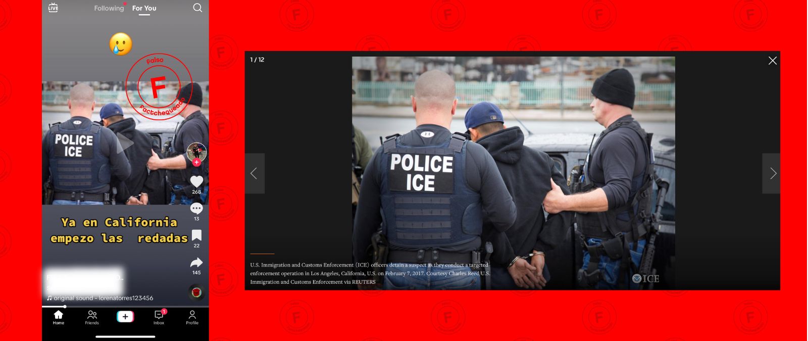 Gracias a la búsqueda inversa, encontramos que la imagen no es reciente, sino que fue tomada en febrero de 2017 durante un operativo de ICE en Los Ángeles.