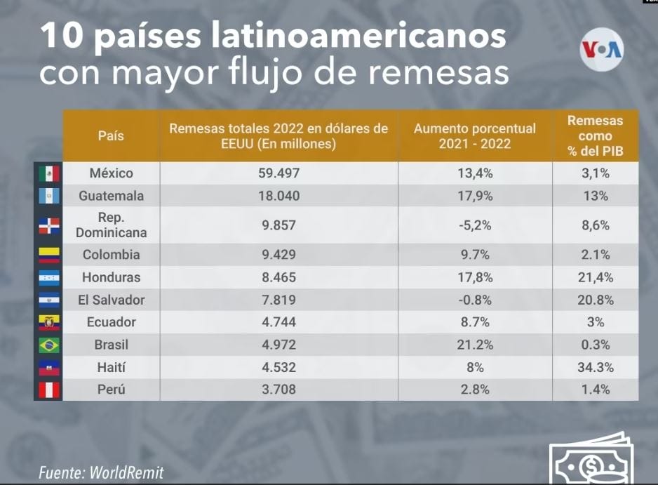 El Banco Mundial ha destacado que algunos países como El Salvador, Honduras, Jamaica y Haití ven superado el 20 % del Producto Interno Bruto (PIB) con remesas.