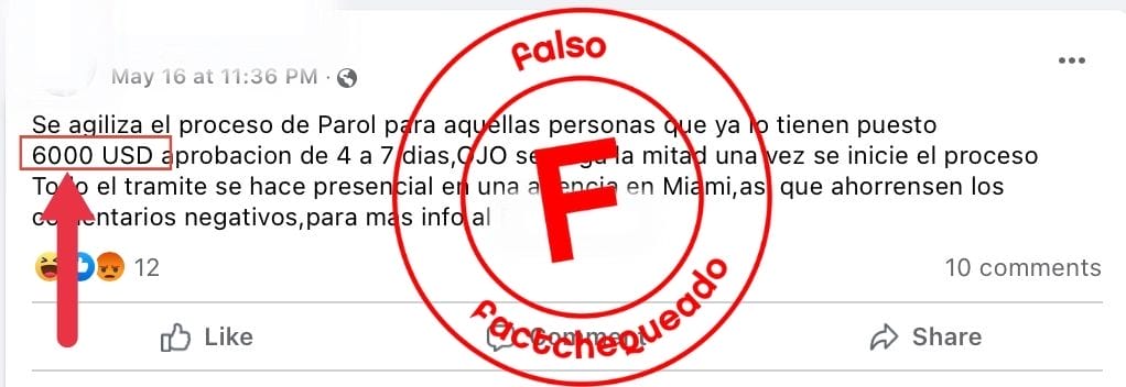 En Facthequeado te explicamos que aplicar por el parole es completamente gratis y que los beneficiarios de este programa “no están obligados a pagar, reembolsar, trabajar para, servir, casarse con o compensar a su persona de apoyo a cambio de que dicha persona presente el Formulario I-134A, en su nombre o por proporcionar apoyo financiero mientras está en Estados Unidos” además de otras estafas durante tu proceso migratorio.