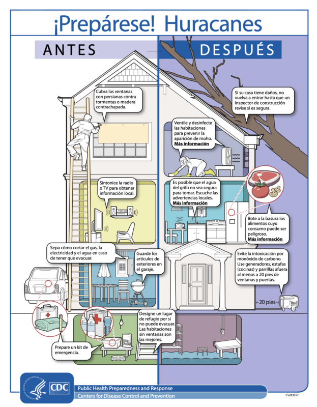 Los Centros para el Control y la Prevención de Enfermedades (CDC) aconsejan que estés preparado para la temporada de huracanes y tormentas, sobre todo si vives en un área de riesgo.