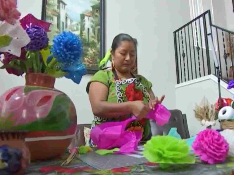 Ella es Catalina, la oaxaqueña que hace flores con hojas de maíz en California