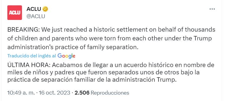 De acuerdo con ACLU, si bien este acuerdo no repara el daño causado a estos niños, es un comienzo esencial. “Un componente crítico del acuerdo es que el gobierno finalmente acordó no volver a implementar esta política de tolerancia cero”.
