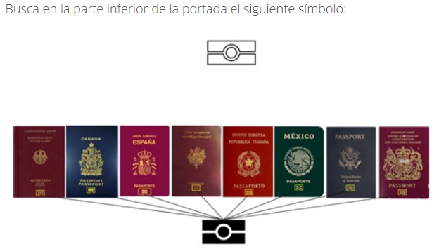 Primero, si quieres saber si tu pasaporte es electrónico, debes de buscar el siguiente logo:
