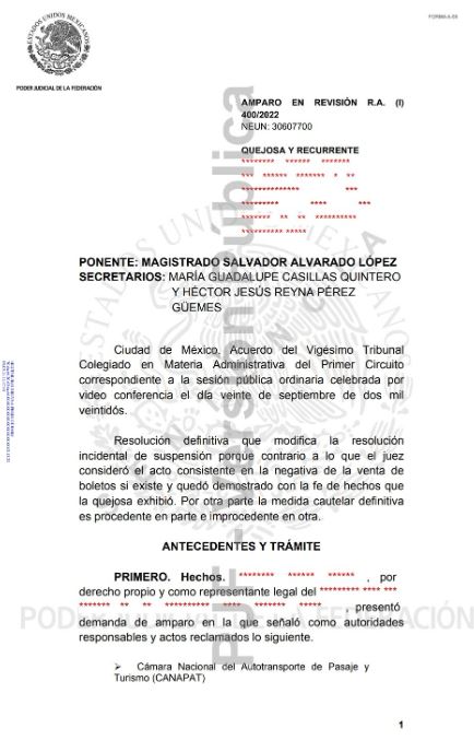Con respecto a la disposición de la venta de boletos, el 6 de octubre el Instituto para las Mujeres en la Migración y el Programa Universitario de Derechos Humanos de la UNAM dieron a conocer el dictamen del Poder judicial con un comunicado: