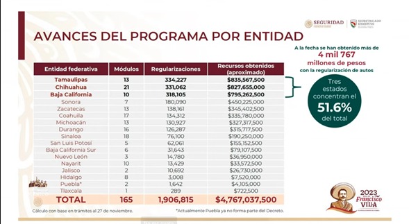 Rodríguez Velázquez también indicó sobre el avance que esta teniendo el programa con los autos provenientes de Estados Unidos y Canadá por entidad.