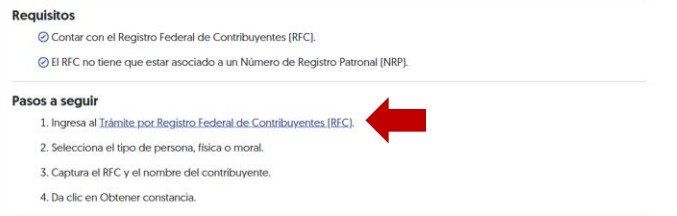 - Registro Federal de Contribuyentes (RFC), este no tiene que estar asociado a un Número de Registro Patronal (NRP).