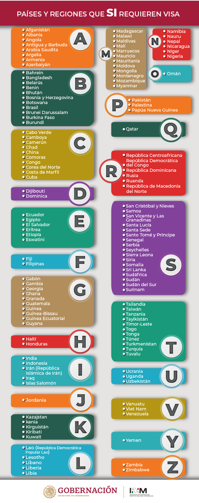 En tanto, de acuerdo con el Instituto Nacional de Migración (INM) las personas de los siguientes países sí requieren visa.