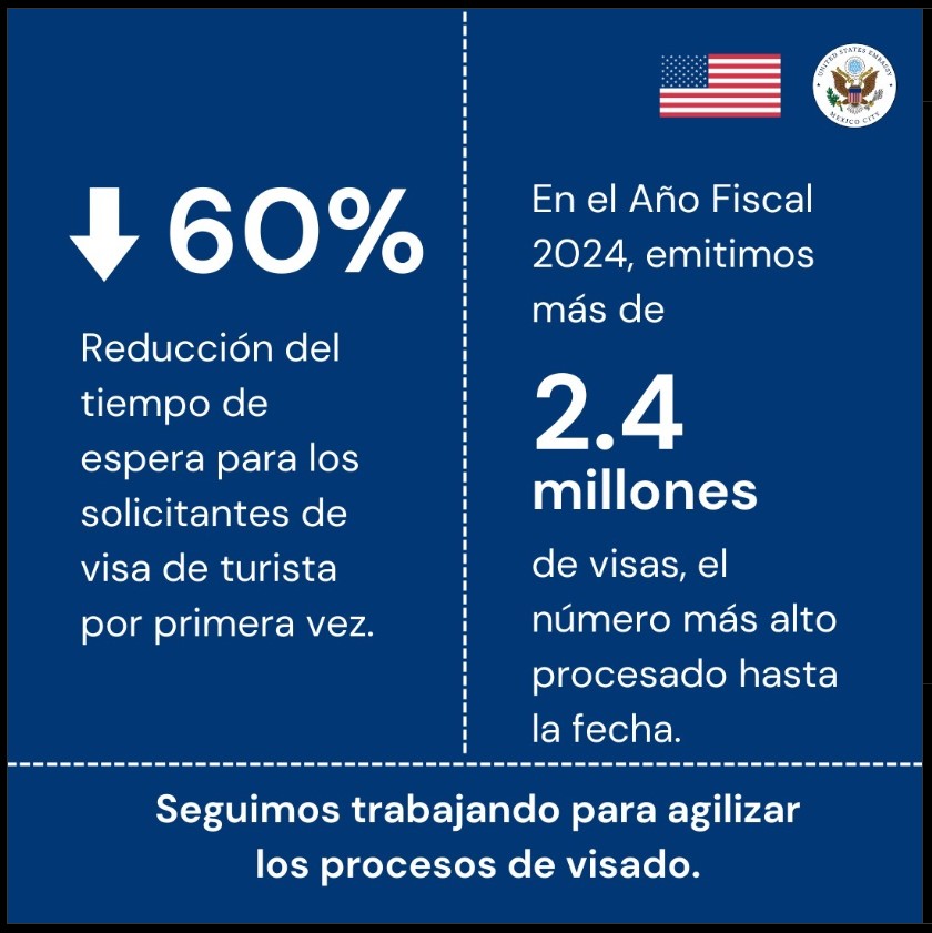 - En 2024, redujeron el tiempo de espera para los solicitantes de la visa de turista por primera vez en un 60%.