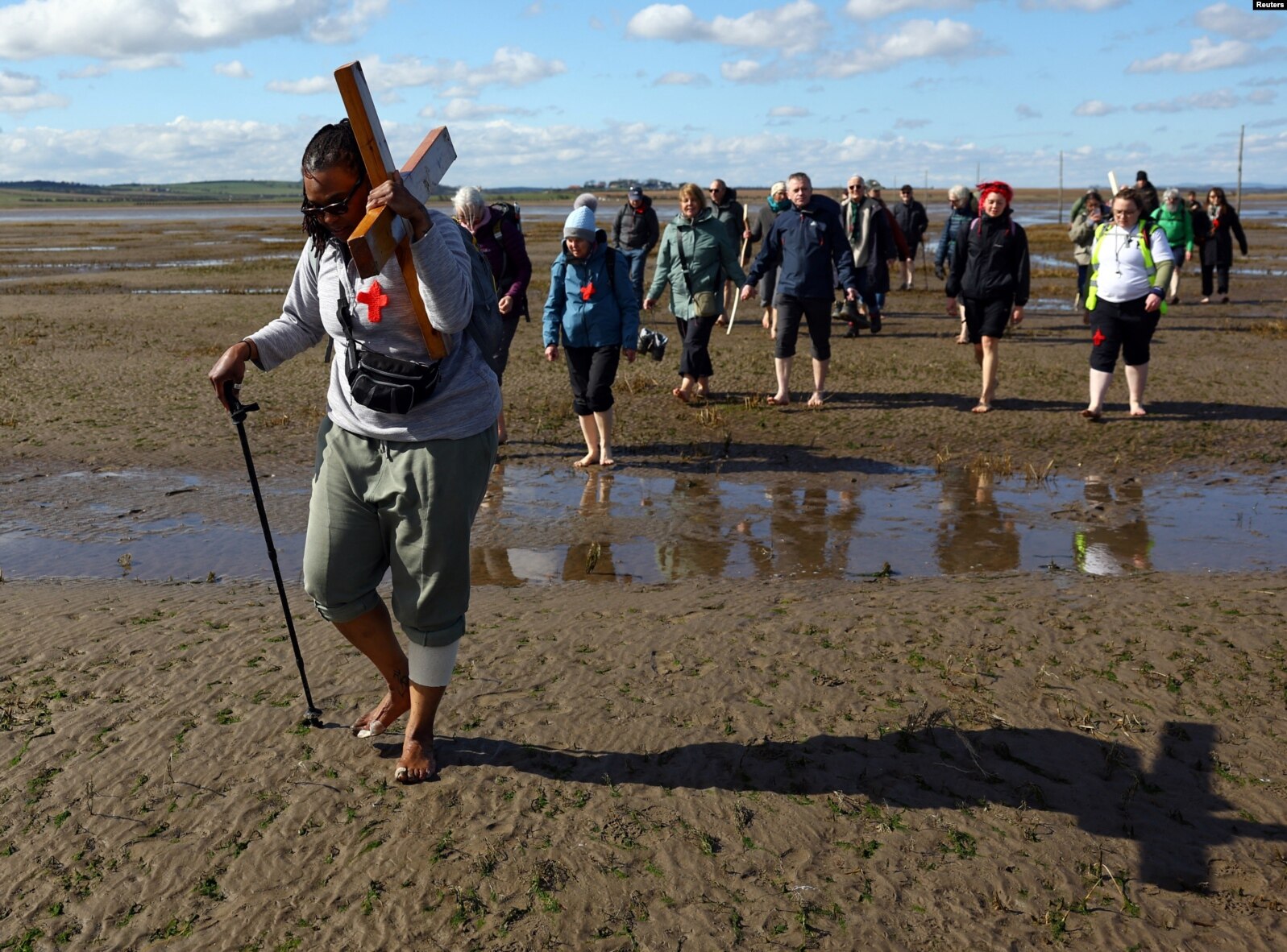 Además, en Northumberland, los creyentes hacen su peregrinación de cada año con la cruz sobre Lindisfarne (Isla Santa).