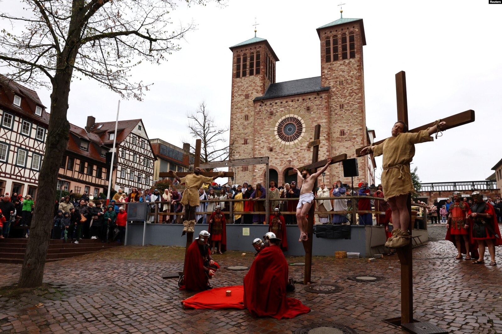 En Frankfurt, Alemania, una comunidad de italianos se reunieron para representar la crucifixión de Jesús en el Viernes Santo 2024.