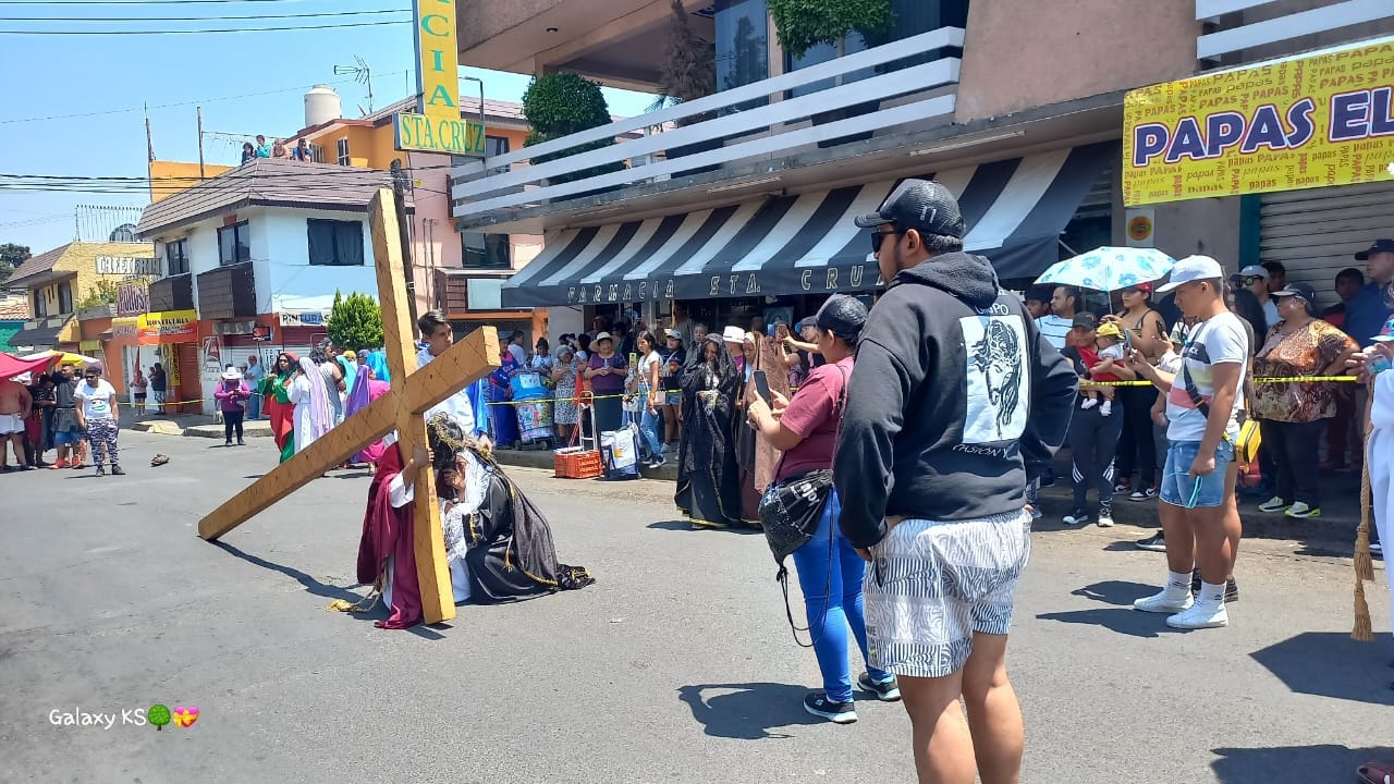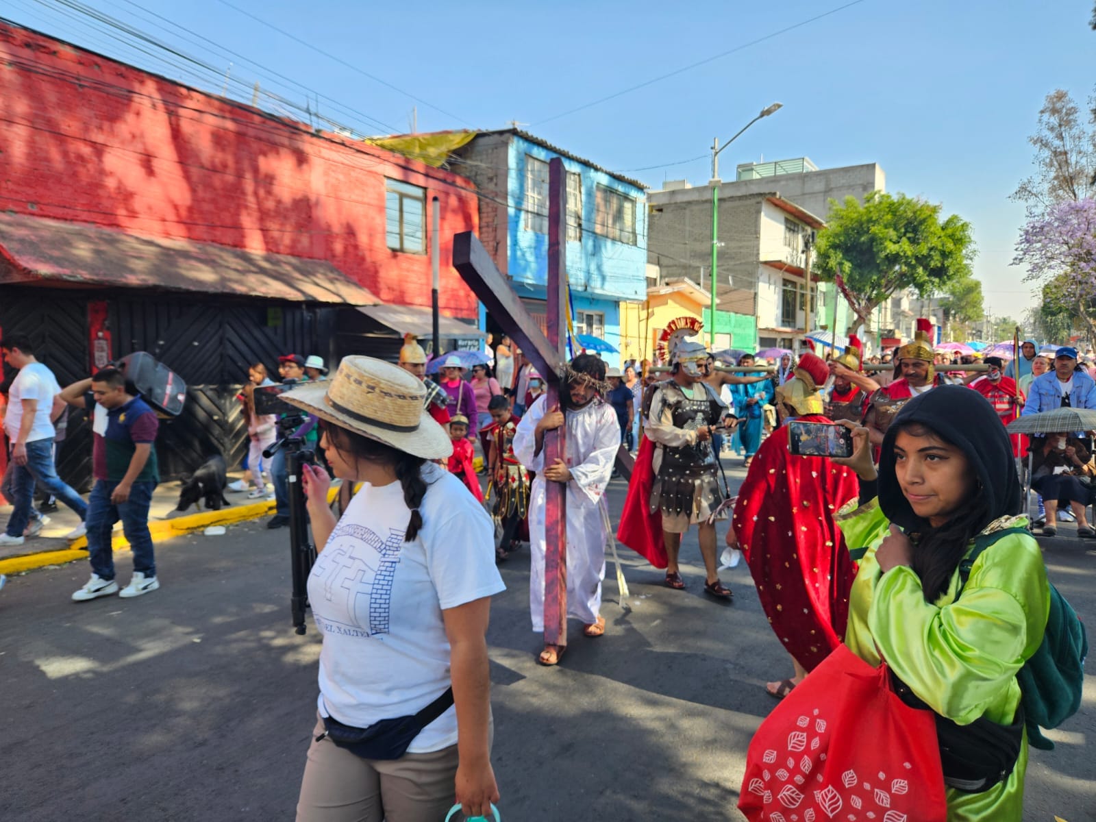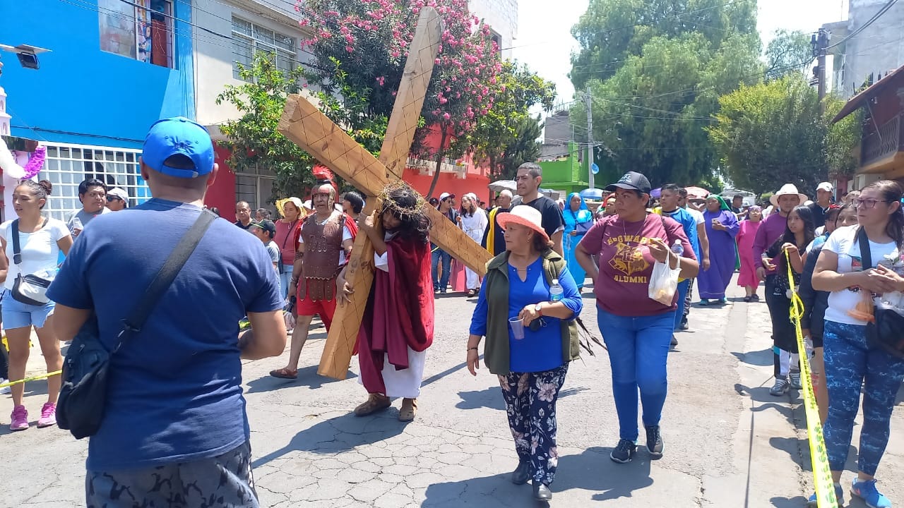 En México, particularmente en Iztapalapa, cientos de personas se han reunido para acompañar a Christopher Gómez Hernández, el joven de 22 años de edad representa a Cristo en la escenificación de este Viernes Santo 2024.