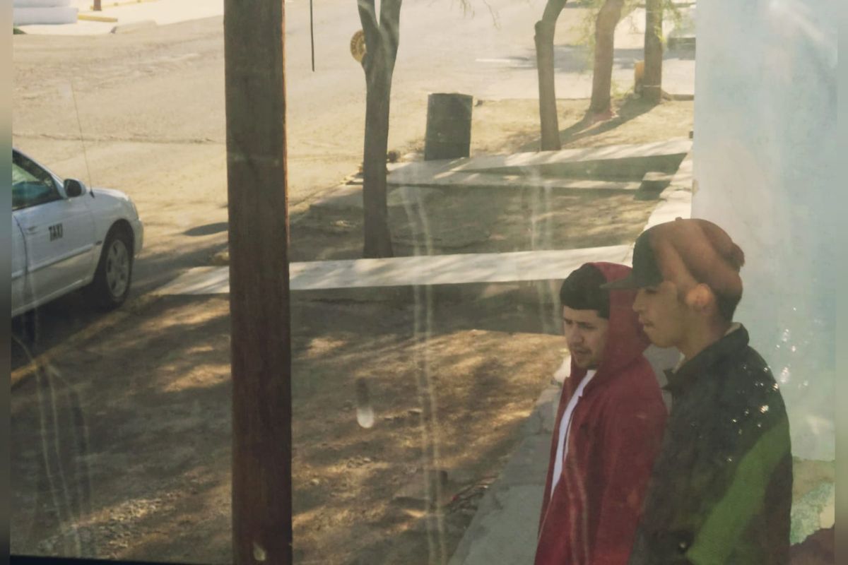 Jóvenes encargados de la revisión de identificaciones al interior de la central de autobuses de Caborca, Sonora. | Foto: Janette de los Reyes