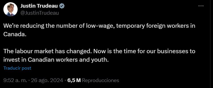 Tal como el primer ministro Justin Trudeau anunció en agosto, la situación y el mercado laboral del país estaba cambiando. Por lo cual buscarán reducir el número de residentes temporales en el país.