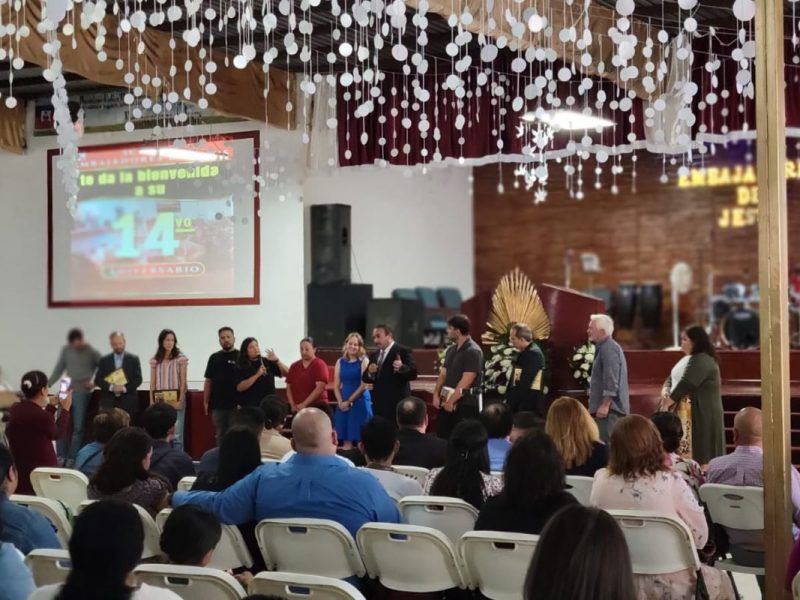La conmemoración por un año más de permanencia de Embajadores de Jesús se dio en medio del servicio dominical, con los asistentes que semana a semana se reúnen.
