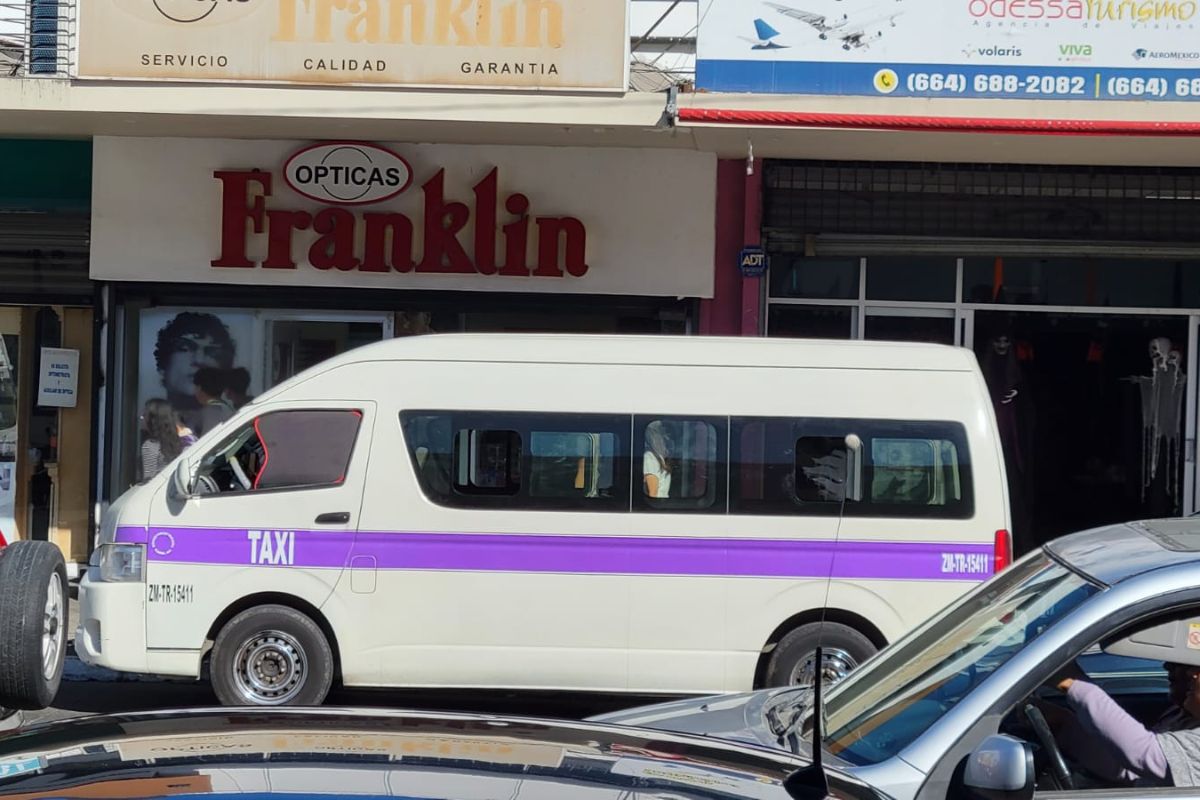 Taxi blanco con dorado (café) que te lleva a la UABC (clínica jurídica), Casa del Migrante o Instituto Madre Asunta: Se aborda en la calle 3a entre avenida Revolución y Constitución. Zona Centro.