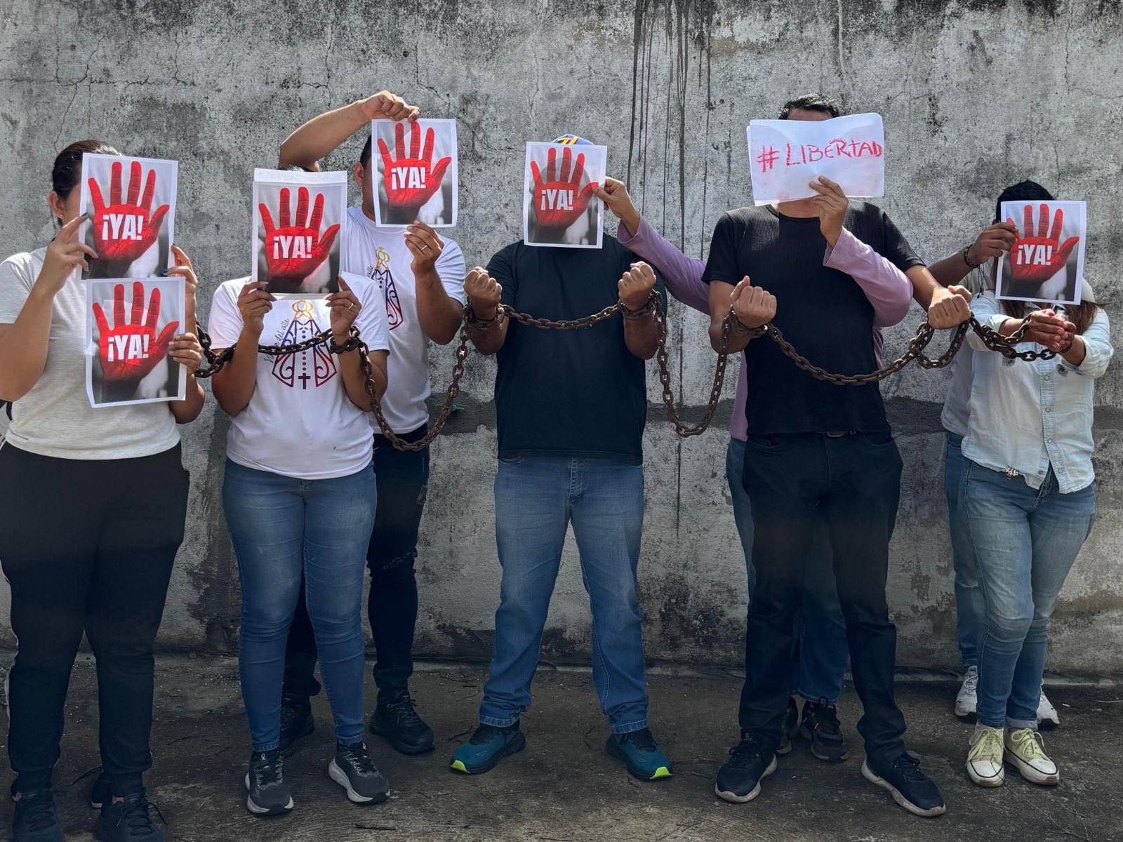 Desde temprano, organizaciones publicaron las fotos de sus protestas, muchos cubren sus rostros para evitar la represión, como es el caso de Un Mundo Sin Mordaza.