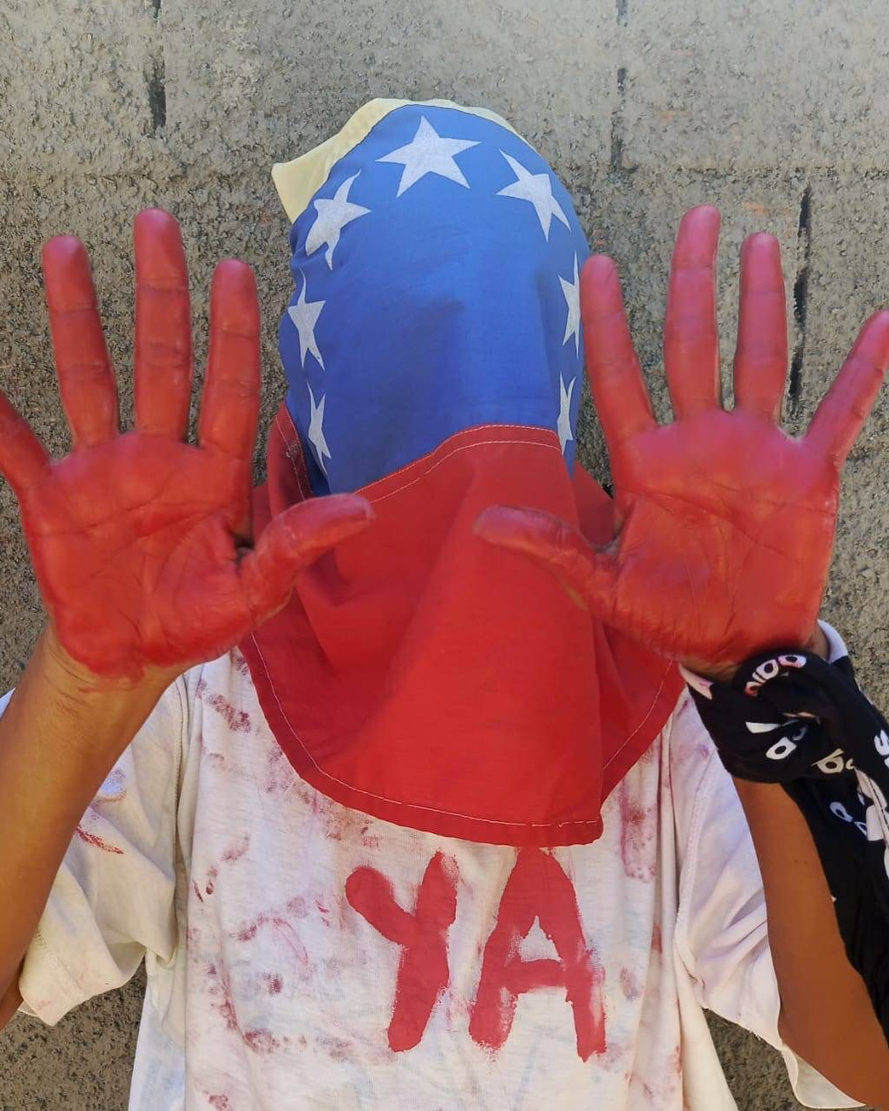 La Plataforma Unitaria Democrática (PUD), coalición opositora, instó a los ciudadanos a pintarse la mano de rojo y colocarla sobre su boca como una forma de protesta contra la censura y represión.