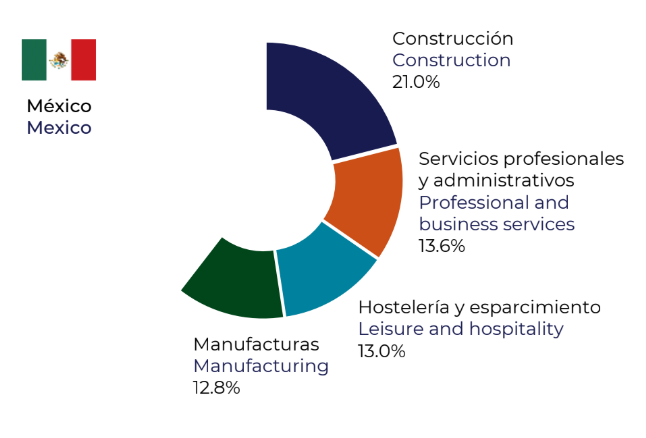 De acuerdo con el Anuario, entre la población mexicana en Estados Unidos mayor de 15 años con empleo, la mayoría de las mujeres se ocupa en el rubro de servicios y comercio; y de los hombres, en el de construcción, minería, instalación y mantenimiento.