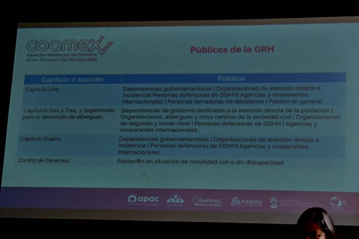 Con el fin de mejorar la atención que albergues, organizaciones de la sociedad civil, instituciones de gobierno y demás organismos que brindan a personas migrantes con alguna discapacidad, la Coamex presentó su “Guía de Respuesta Humanitaria (GRH) para la Atención de Personas con Discapacidad en Contexto de Movilidad Humana”, un manual que tiene como fin estandarizar la detección, atención y respuesta de estos organismos hacia un grupo especialmente vulnerable.