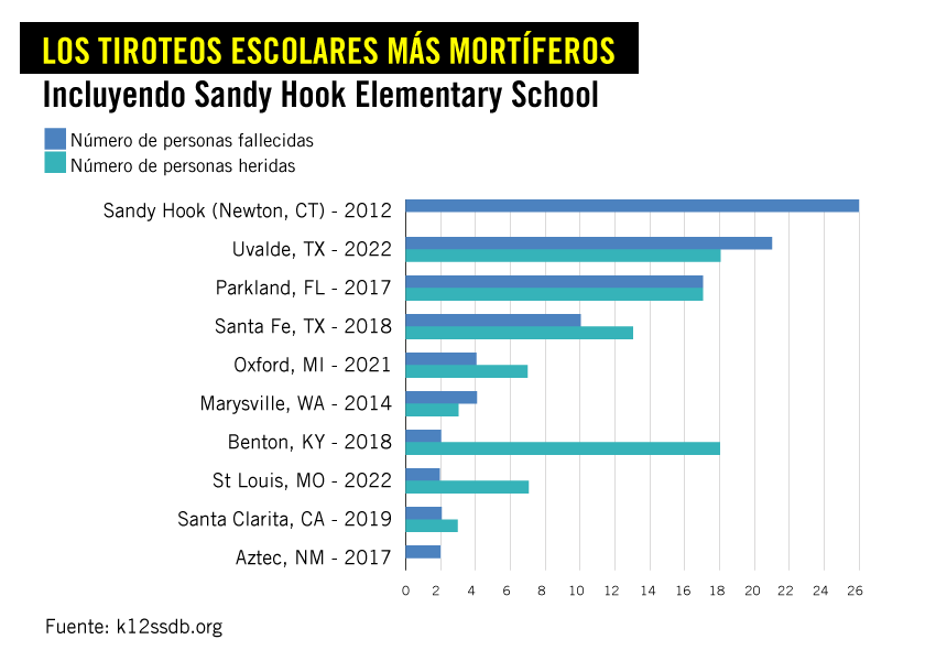 Entre 2012 y 2022, se registraron 189 tiroteos en escuelas con al menos una víctima mortal, de acuerdo con datos de la base independiente K-12 School Shooting Database.