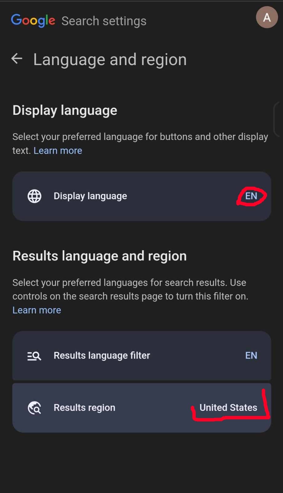 Para ver los resultados en inglés y con el nombre actualizado, basta con ir a los ajustes de búsqueda, seleccionar lenguaje y región, y seleccionar Estados Unidos como región de los que se buscan obtener resultados de la búsqueda.