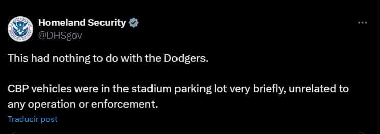 En tanto, la subsecretaria de Seguridad Nacional, Tricia McLaughlin explicó vía correo a NBC News lo siguiente: “Esto no tuvo nada que ver con los Dodgers”.
