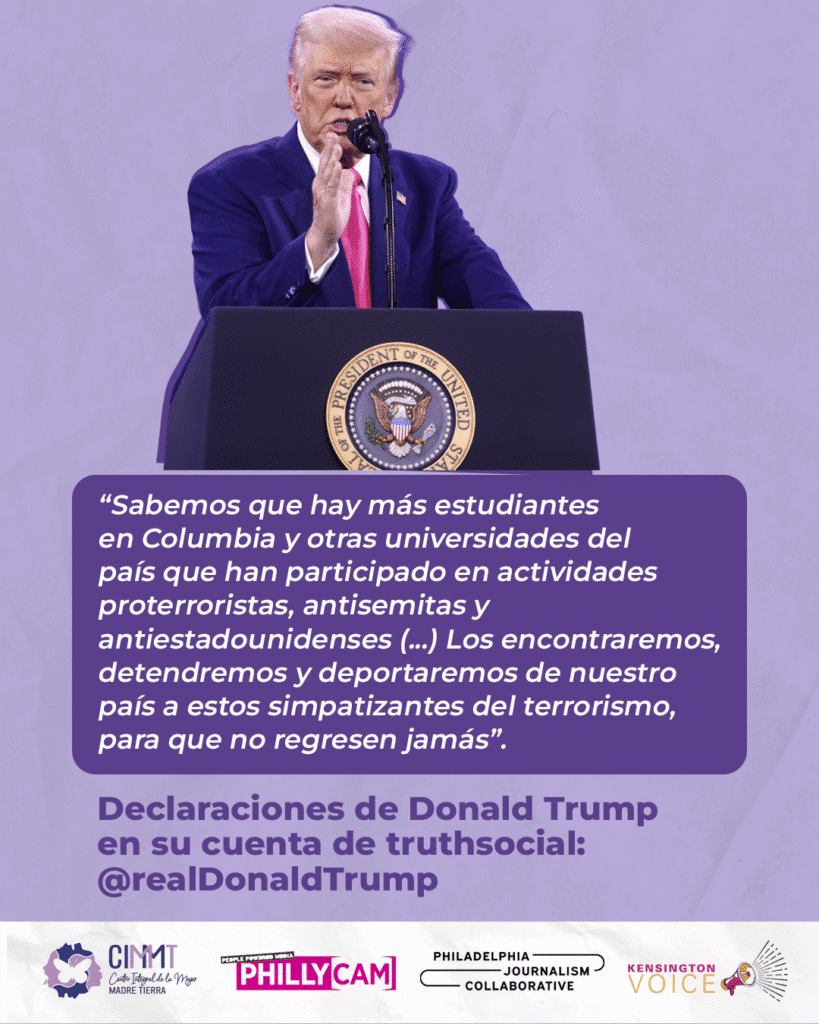 Aunque no hay mención a la población palestina en la Orden, las detenciones a activistas propalestinos dan señales sobre otra ruta de persecución. En marzo, el estudiante de posgrado Mahmoud Khalil y participante notable en las protestas de la Universidad de Columbia, fue arrestado por ICE para su deportación, cancelando así su visa de estudiante.