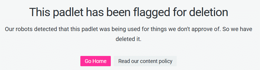 “Nuestros robots detectaron que este padlet estaba siendo usado para cosas que no aprobamos. Por eso lo hemos eliminado”.