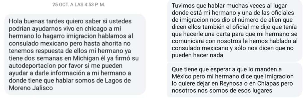 En Conexión Migrante hemos recibido numerosos reportes de personas que buscan a sus familiares deportados. Aunque saben que fueron deportados, desconocen el punto de salida, la fecha exacta o el destino final. Esta falta de información evidencia la ausencia de un sistema confiable por parte de las autoridades mexicanas para dar seguimiento a estos casos.