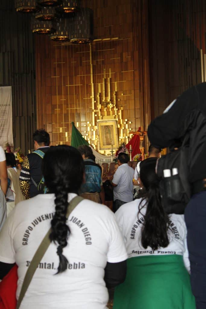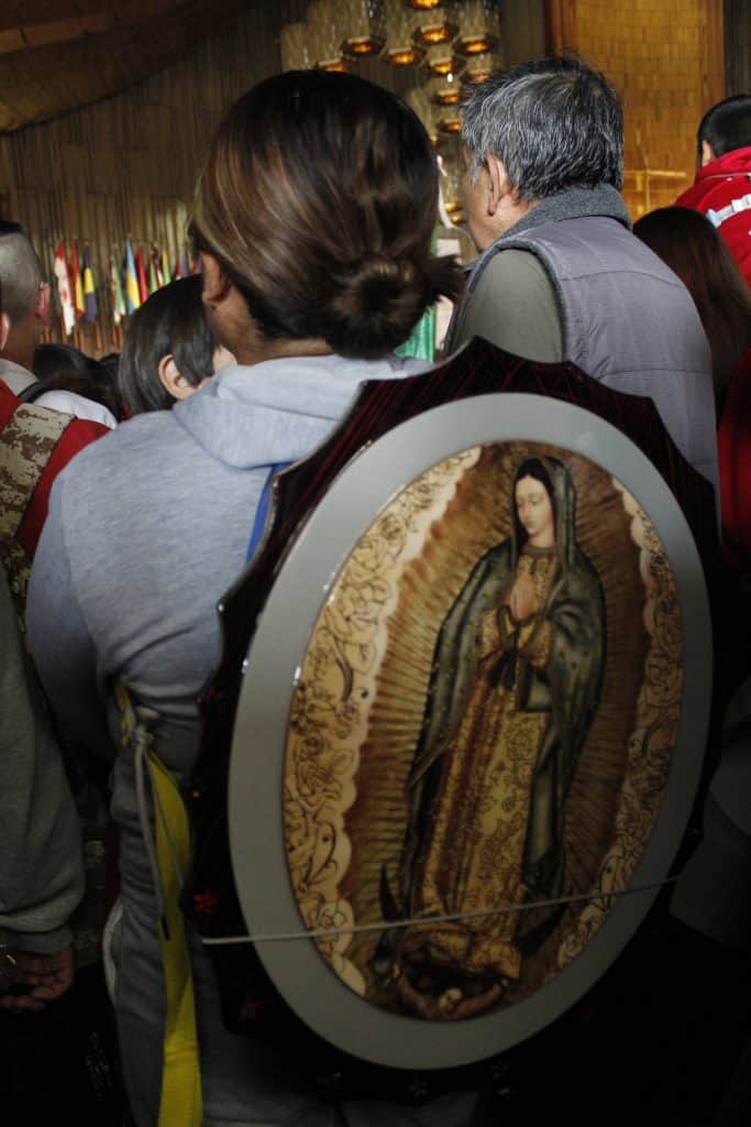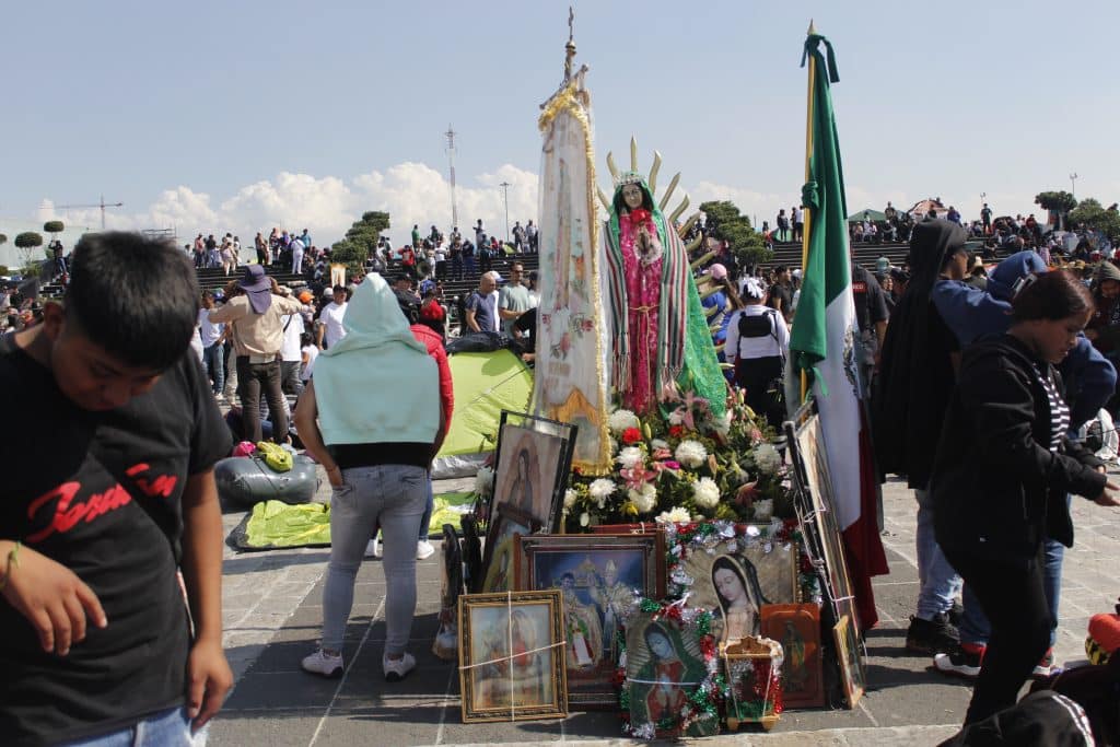 En cada rincón aparece la imagen de la Virgen: en playeras, collares, aretes y en figuras que acomáñan a los peregrinos durante todo su recorrido, que sin importar el peso, tamaño y tiempo, cargan en sus brazos o espalda.