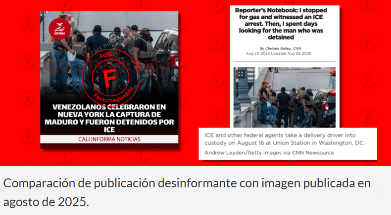 No, esta imagen no muestra a ICE deteniendo a inmigrantes venezolanos en Nueva York que celebraban la captura de Maduro