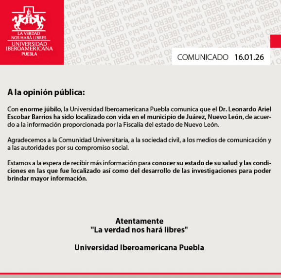 La Universidad Iberoamericana confirmó la localización del académico e informó que está pendiente de los detalles sobre su estado de salud. El hallazgo representa un respiro para sus colegas y familiares, quienes vivieron días sin saber de su paradero.