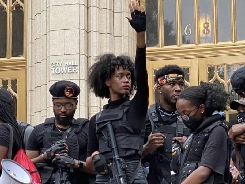 El 8 de enero, frente al Ayuntamiento de Filadelfia, miembros del grupo que se identifican como el Black Panther Party for Self-Defense se hicieron notar entre los manifestantes portando armas largas, incluidos fusiles de estilo militar que, según el colectivo, portan de forma legal.
