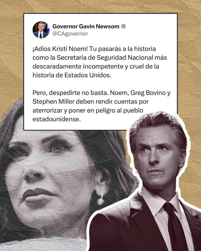 Adicionalmente, en su cuenta oficial como gobernador compartió un mensaje más serio y en español donde tacha a Noem como la titular del DHS “más descaradamente incompetente y cruel de la historia de Estados Unidos”.