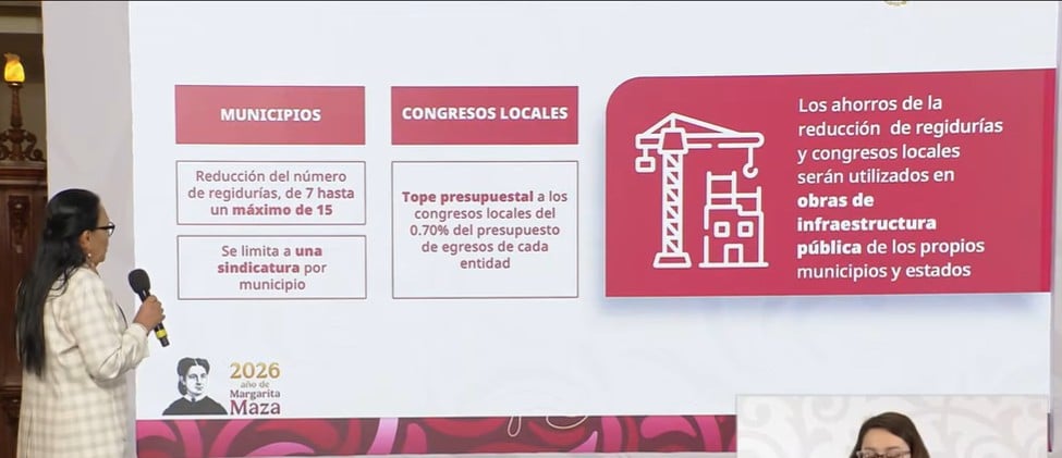 “Los ahorros producto de esta iniciativa, tanto en regiduría y congresos locales, serán utilizado en obras e infraestructura pública de los municipios y estados”, declaró la titular de la Segob.