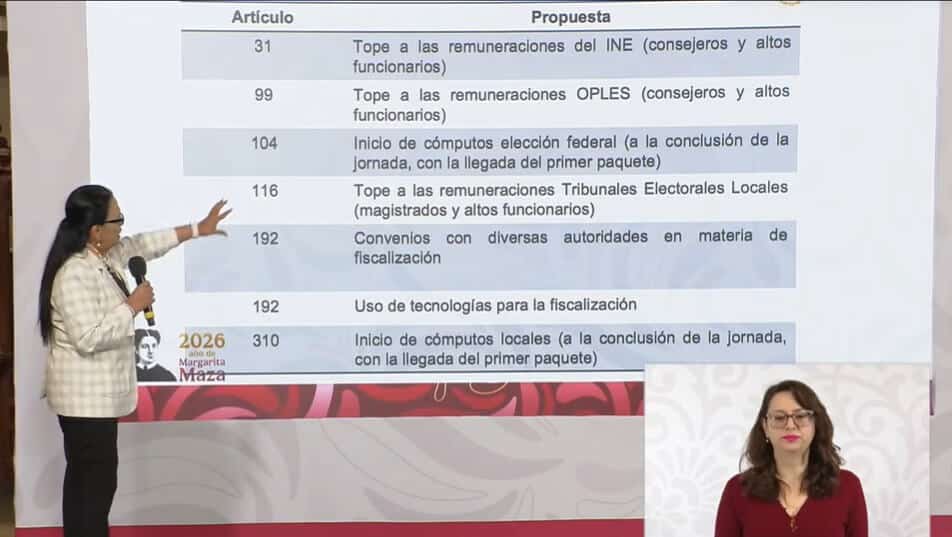 En tanto, Rosa Icela detalló que la reducción de privilegios del Instituto Nacional Electoral (INE), tribunales electorales y los órganos electorales estatales consistirá en impedir que los consejeros, magistrados y altos funcionarios no puedan ganar más que la presidenta.
