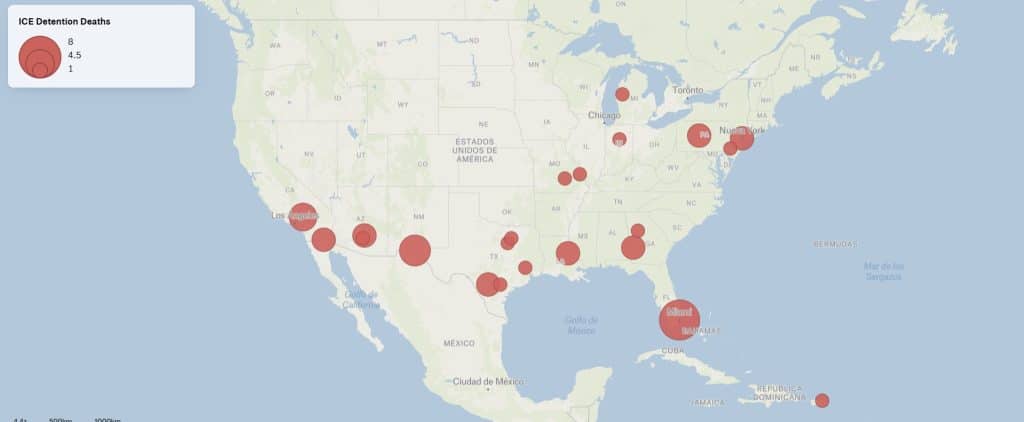 De las 41 personas incluidas en el mapa, solo 12 fallecieron físicamente dentro de un centro de detención, los 29 restantes fueron trasladados a hospitales u otros centros médicos antes de su fallecimiento.
