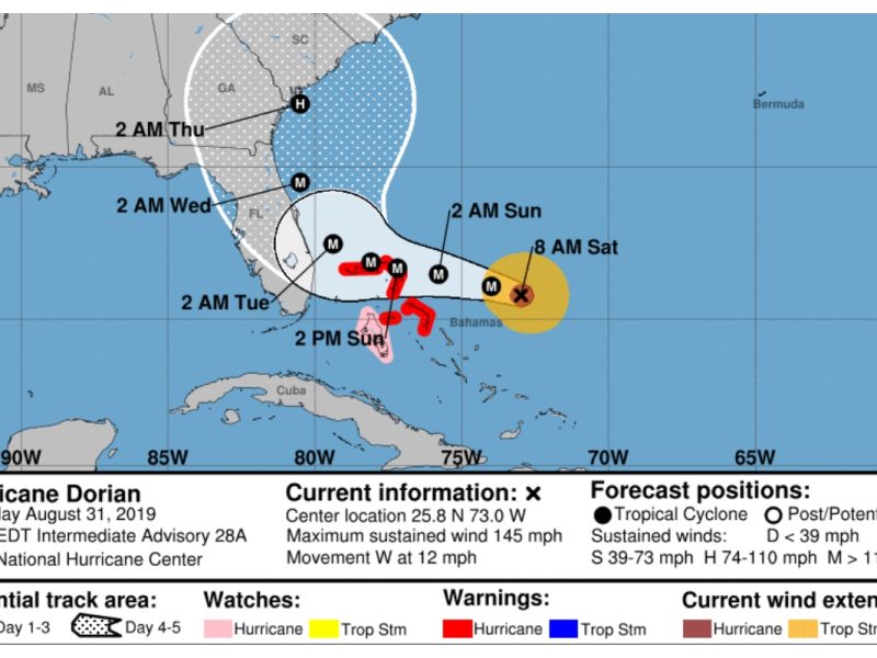 Ha habido un cambio notable durante la noche en el pronóstico de Dorian después del martes.