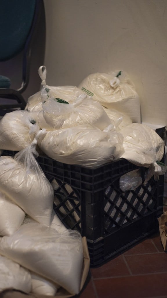 Algunos regresan semana tras semana. Este pequeño ejército se dedica a empacar, en porciones familiares, toneladas de arroz, frijoles y harina, a preparar las despensas y atender a las personas que llegan. Diana les enseña y acompaña, su deseo es ayudar.