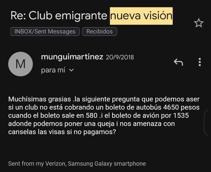 El caso de Nueva Visión Latinoamérica no es nuevo. La primera queja que recibimos de una persona estafada fue en septiembre de 2018, cuando una persona fue expulsada por alzar la voz por los sobreprecios, esta no fue la única en los meses y años siguientes, éstas siguieron llegando. Las constantes amenazas de Palacios de sacar del programa a quien se quejaba, provocaron miedo un miedo tal que hacía permanecer callados a los migrantes.