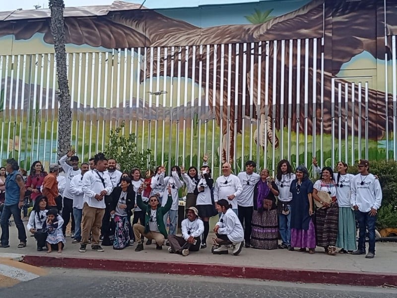El mural Abrazo Mutuo fue inaugurado en el muro fronterizo de Playas de Tijuana. Representa hermandad entre el norte y el sur con un mensaje de dignidad y paz.